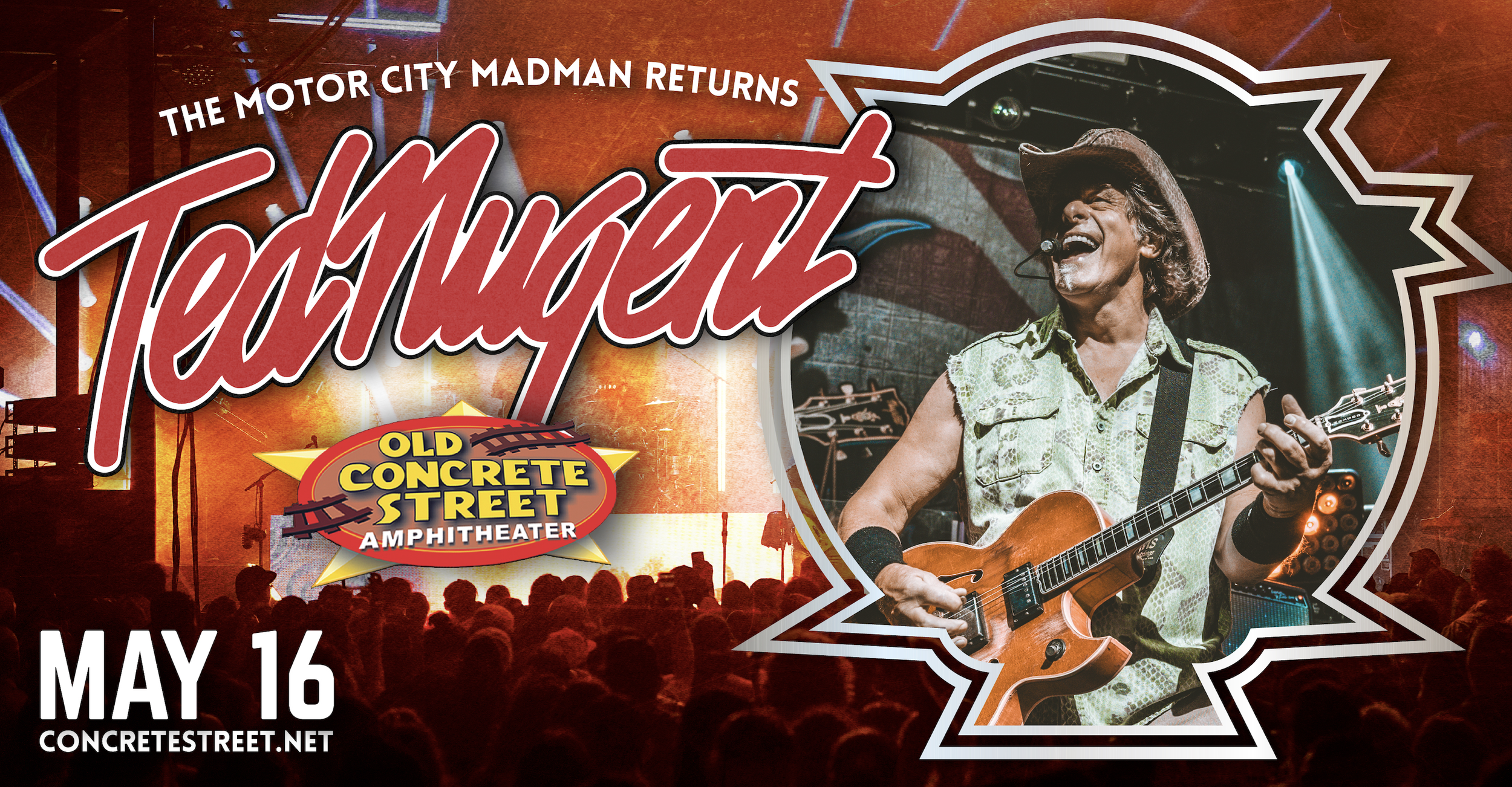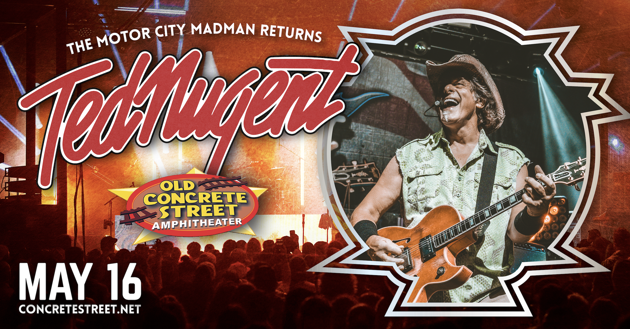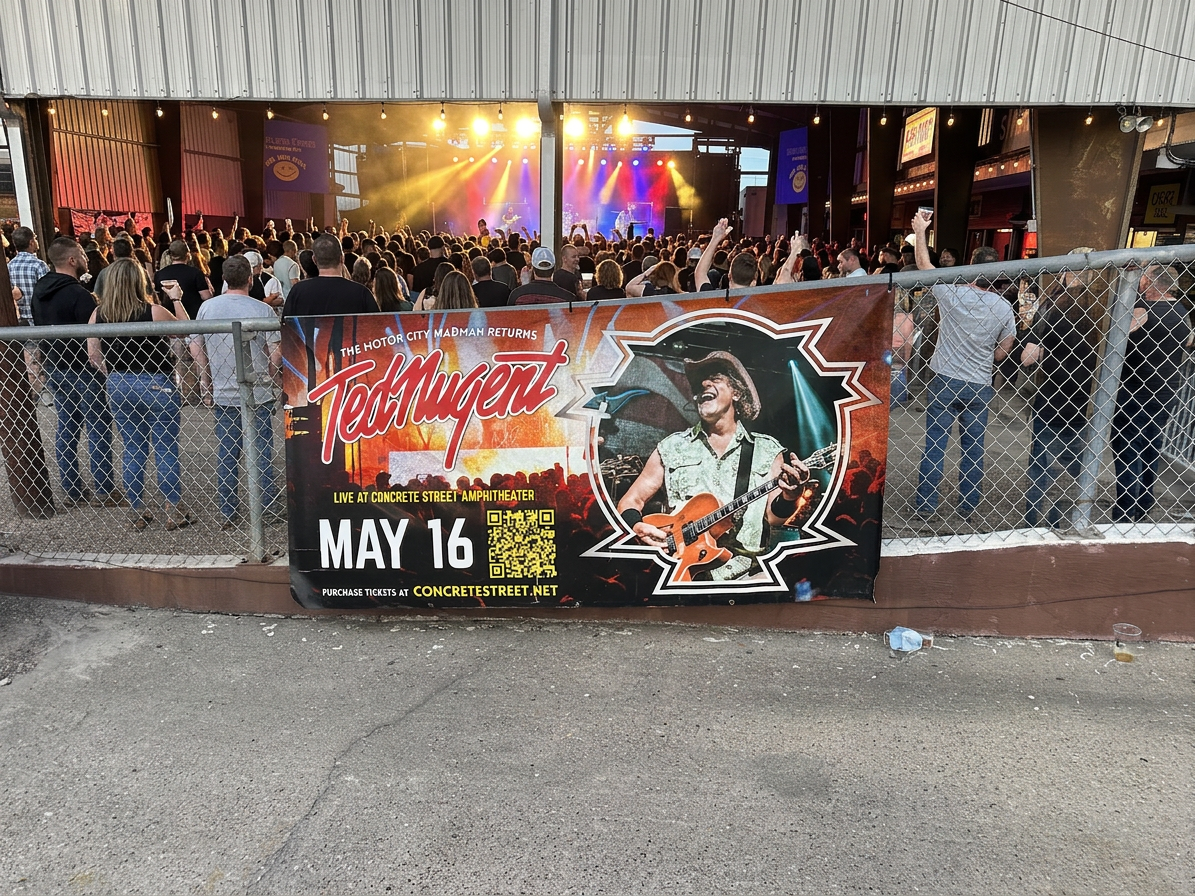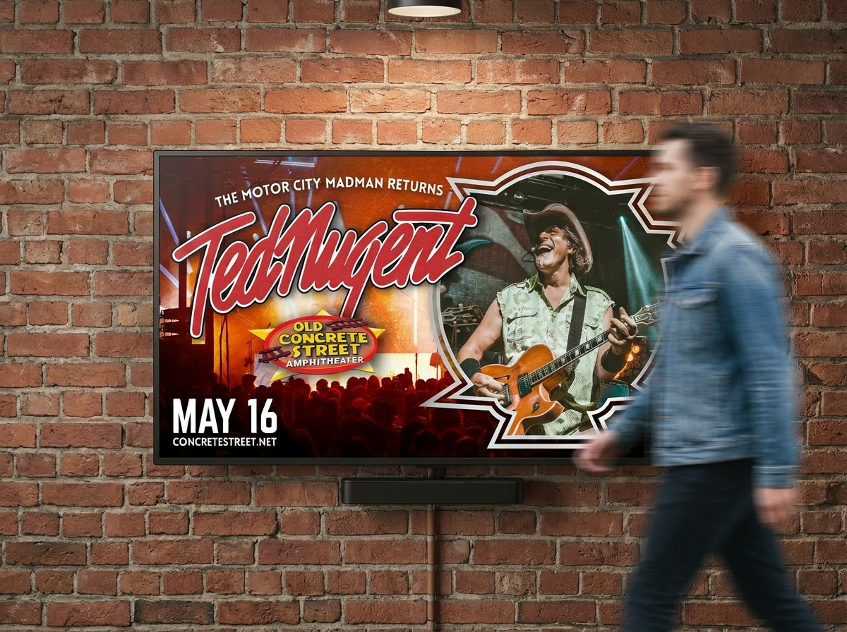 Concrete Street Amphitheater, in collaboration with the Ted Nugent touring team, required a cohesive promotional system to support a nationally touring rock performance in Corpus Christi, TX.