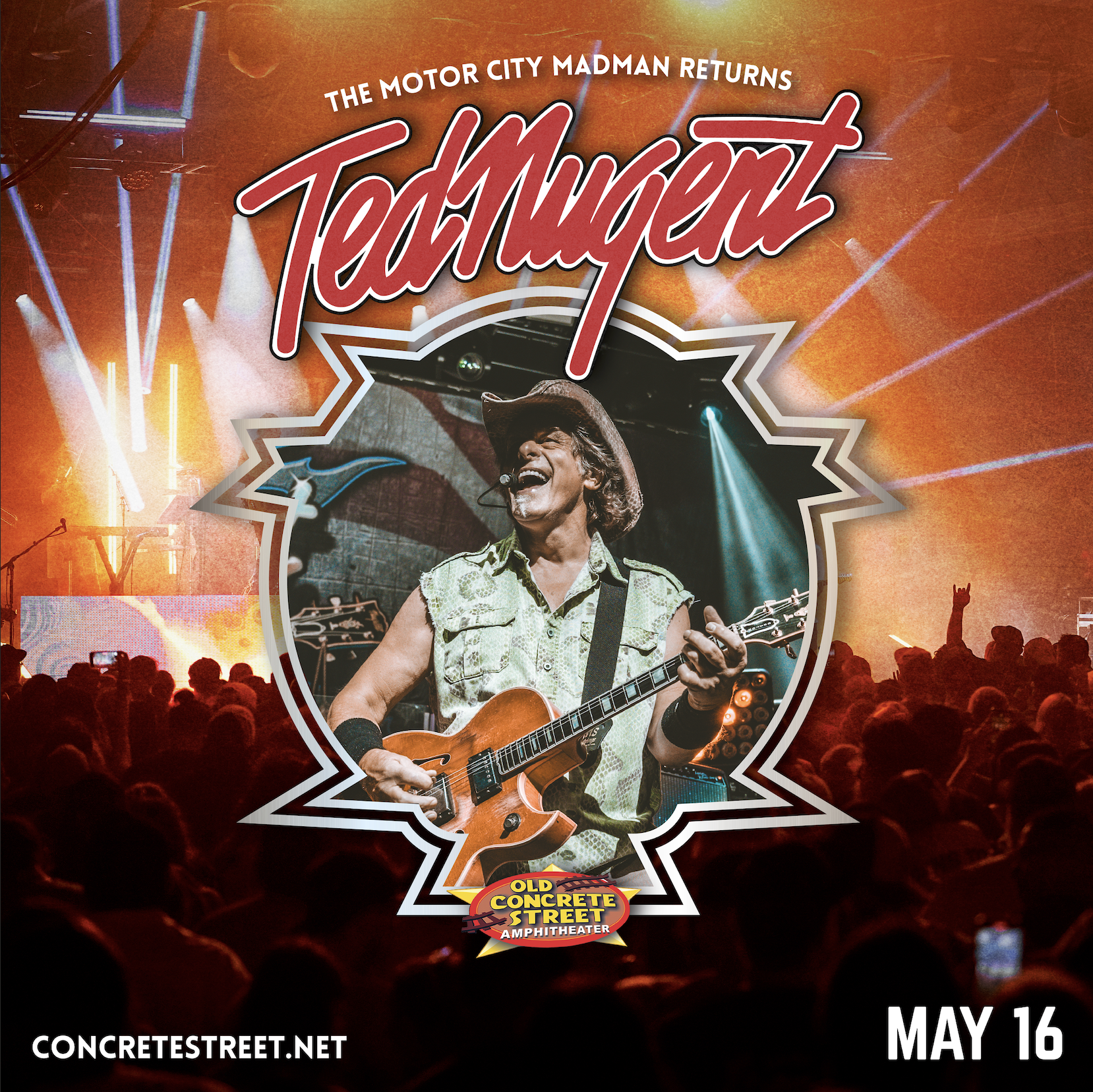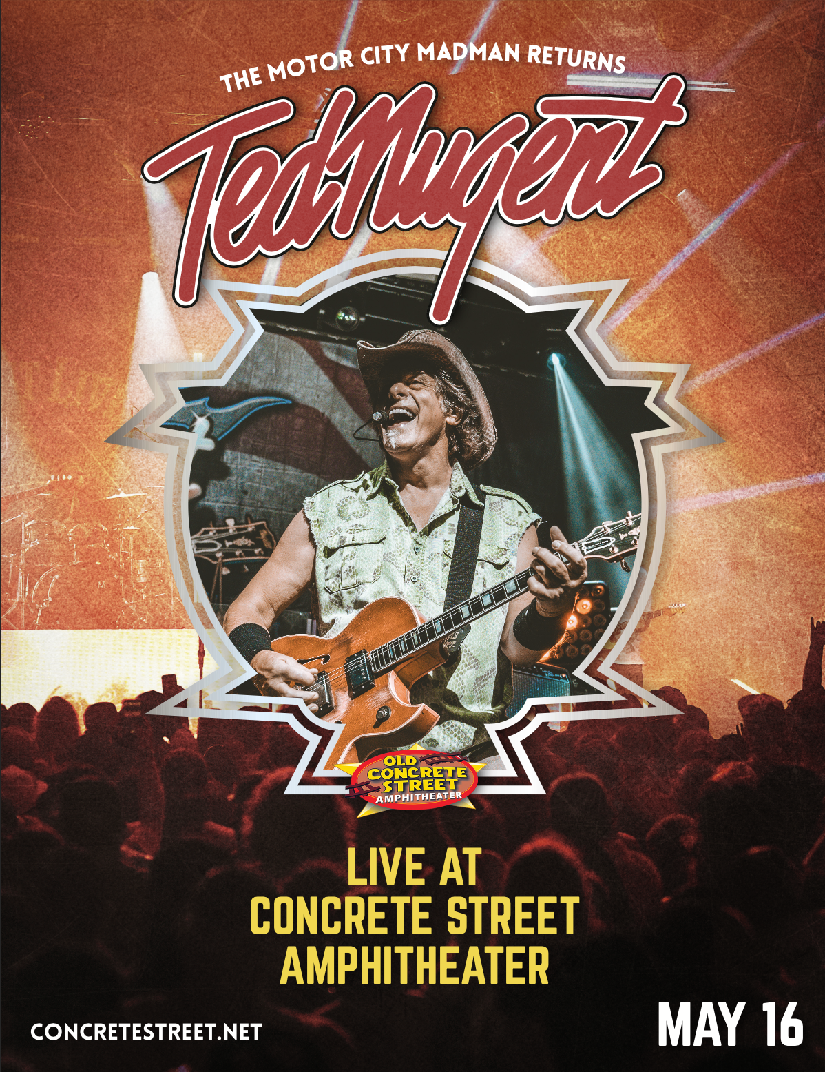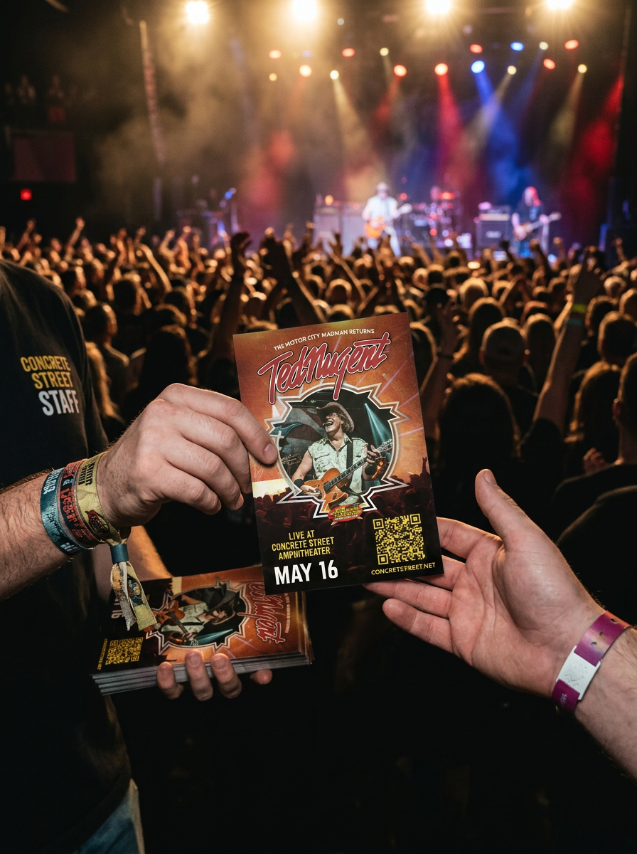 Concrete Street Amphitheater, in collaboration with the Ted Nugent touring team, required a cohesive promotional system to support a nationally touring rock performance in Corpus Christi, TX.