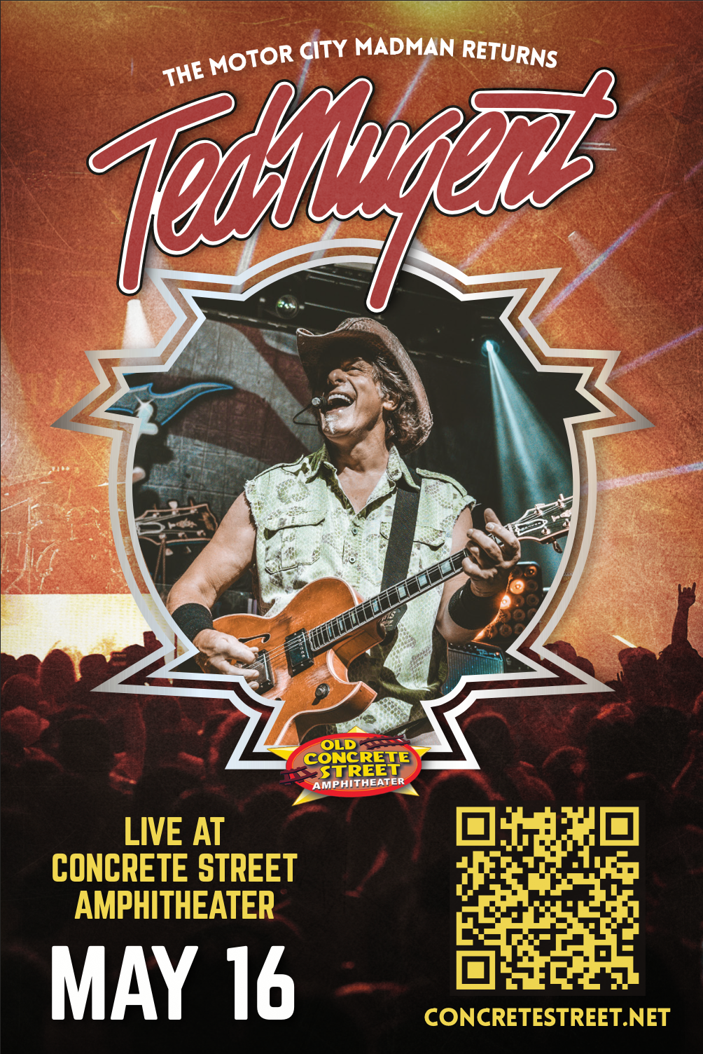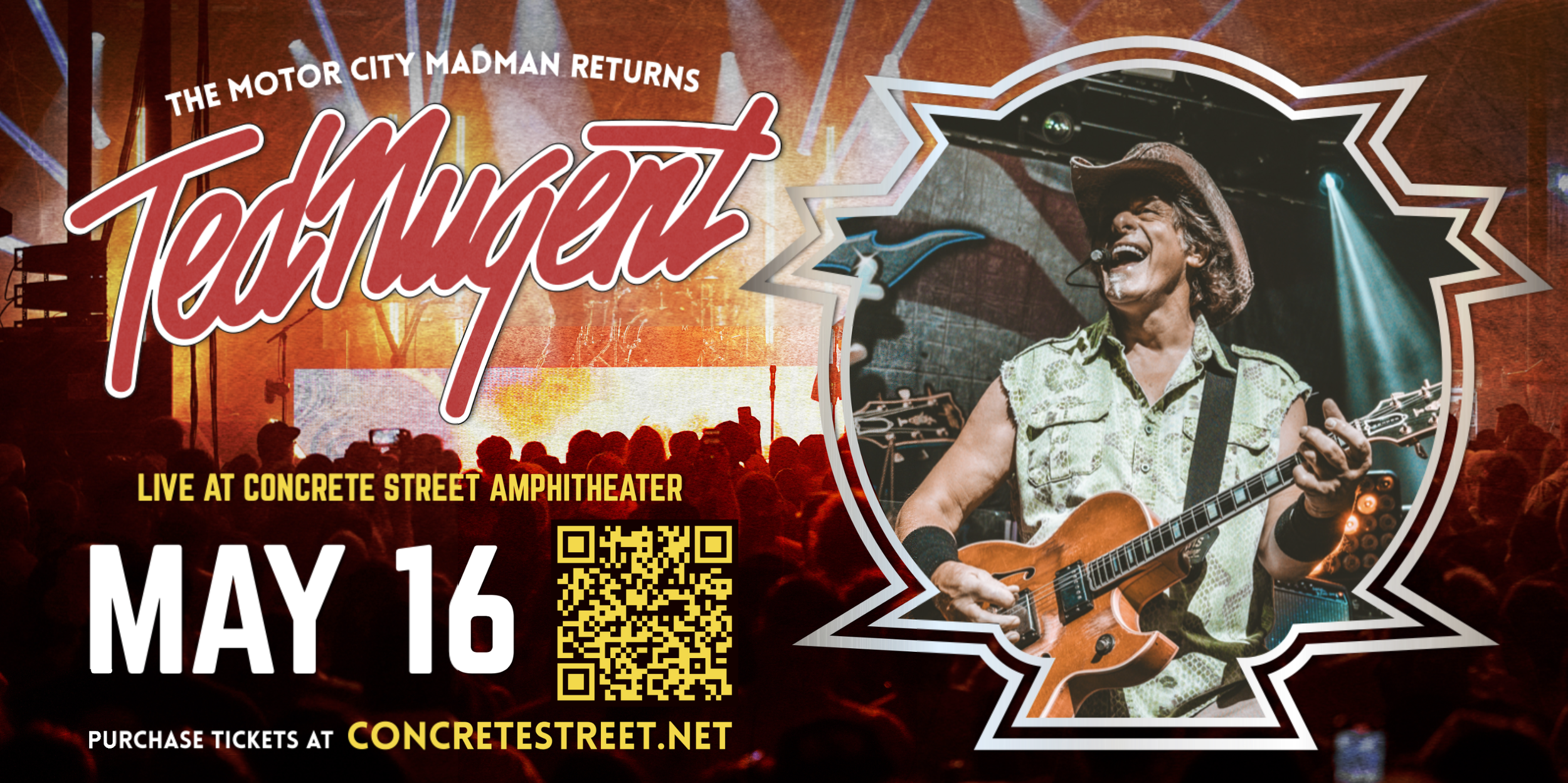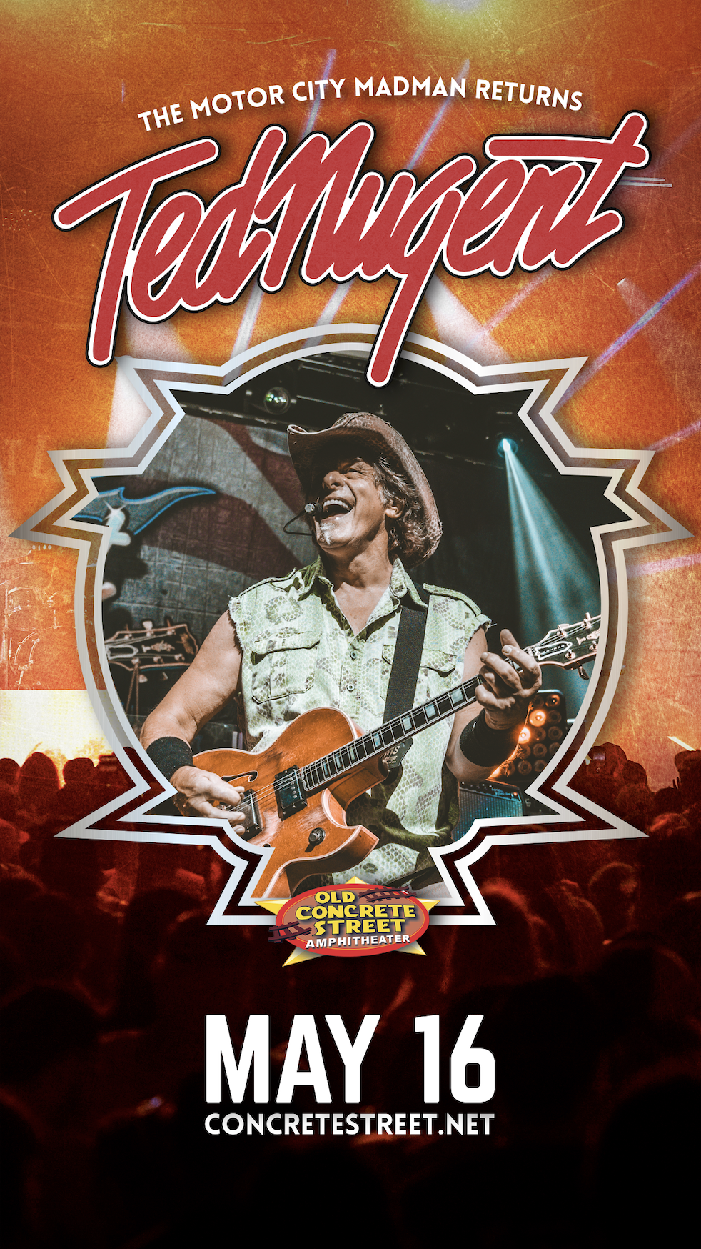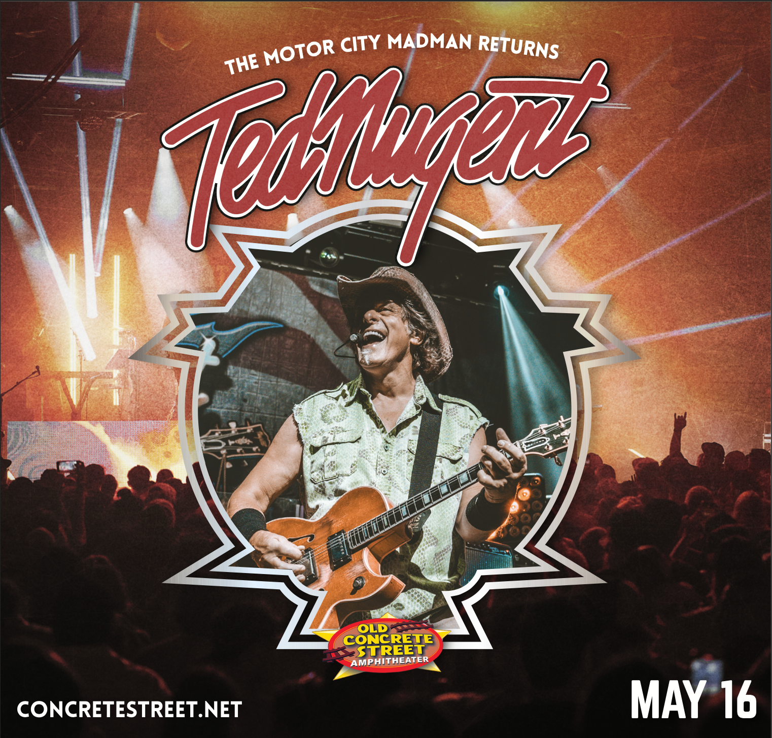 Concrete Street Amphitheater, in collaboration with the Ted Nugent touring team, required a cohesive promotional system to support a nationally touring rock performance in Corpus Christi, TX.