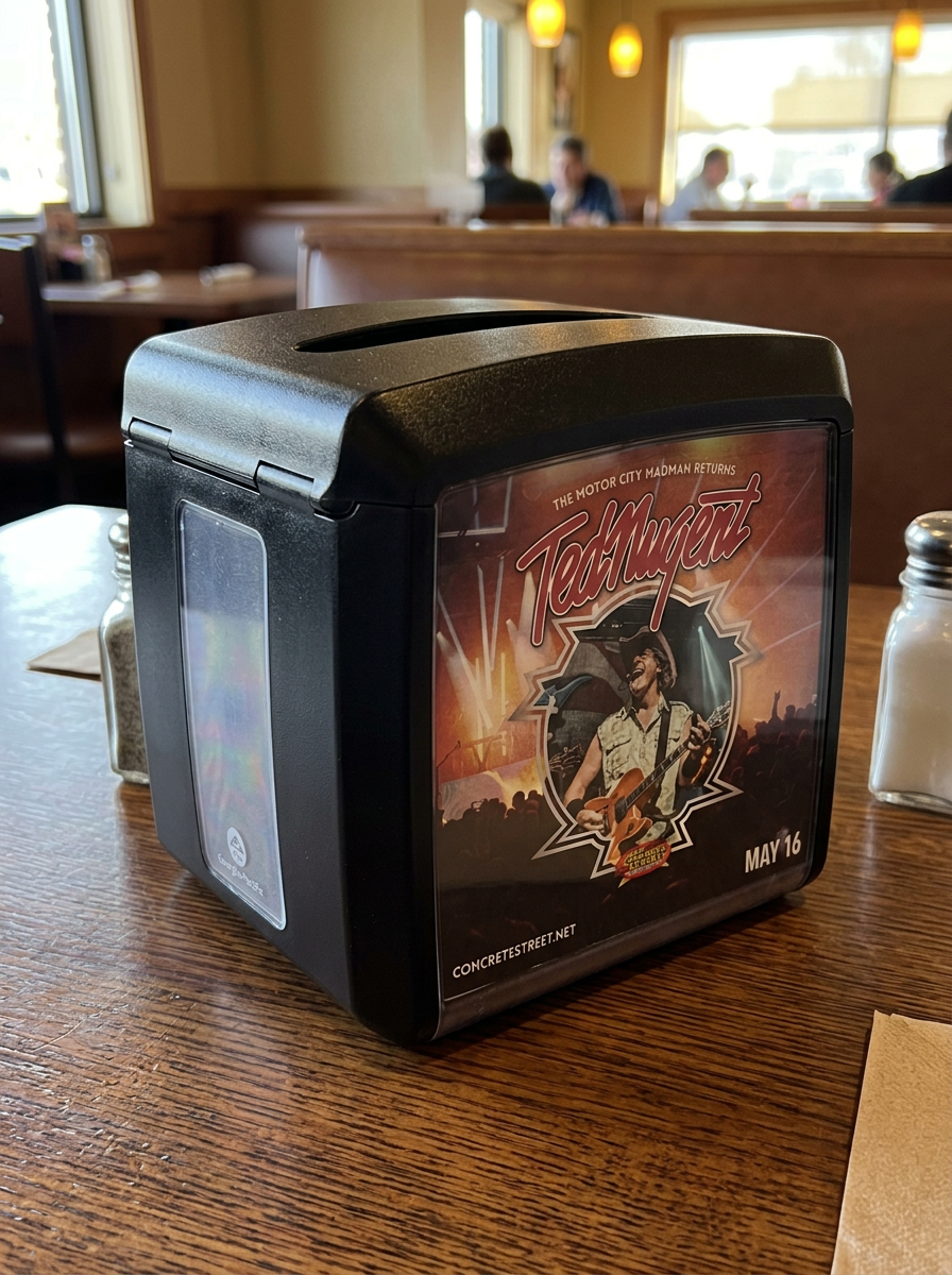 The approach centered on creating a refreshed, high-energy visual system that embodies the raw intensity of a live performance. Drawing inspiration from Ted Nugent’s legacy album artwork and classic rock-and-roll aesthetics, the design amplifies bold color, texture, and movement to evoke the atmosphere of being in the crowd. The result is a flexible yet cohesive system that maintains visual impact across multiple formats while reinforcing the artist’s identity and the venue’s presence.